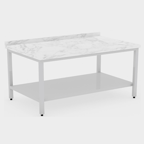 Üst tabla 30 mm kalınlığında tek parça beyaz mermer, ayaklar arası atkı saçları 1.20mm kalınlığında saç, bant 1,00 mm kalınlığında saçtandır.